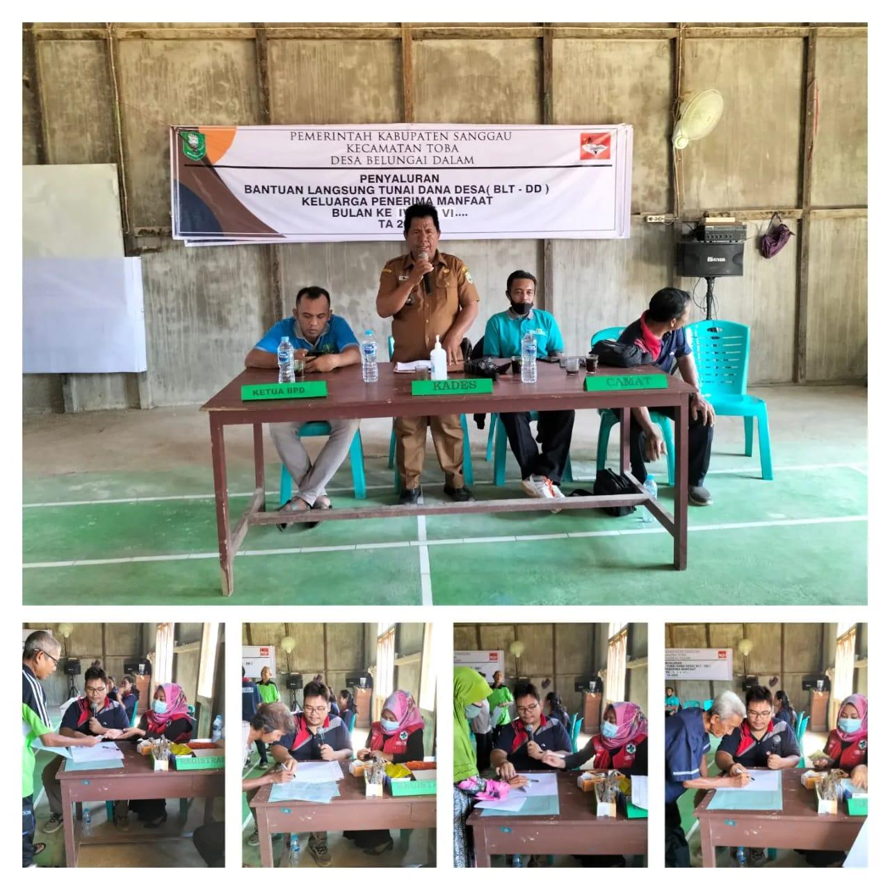 Penyaluran Bantuan Lansung Tunai Dana Desa Bulan Ke - IV, V dan VI Tahun 2022. penyaluran BLT DD dilaksanakan pada hari selasa, 09 Agustus 2022 di gedung pertemuan desa belungai dalam. dalam kesempatan kali ini, kapala Desa Belungai Dalam (Masrandi) Berpesan, untuk memanfaatkan uang tersebut secara maksimal di tengah gejolak ekonomi ini. selain pembagian blt dd, pemerintah desa belungai dalam juga membagikan multi vitamin bagi para KPM yang langsung dibagikan oleh Bidan Desa (Nisa).